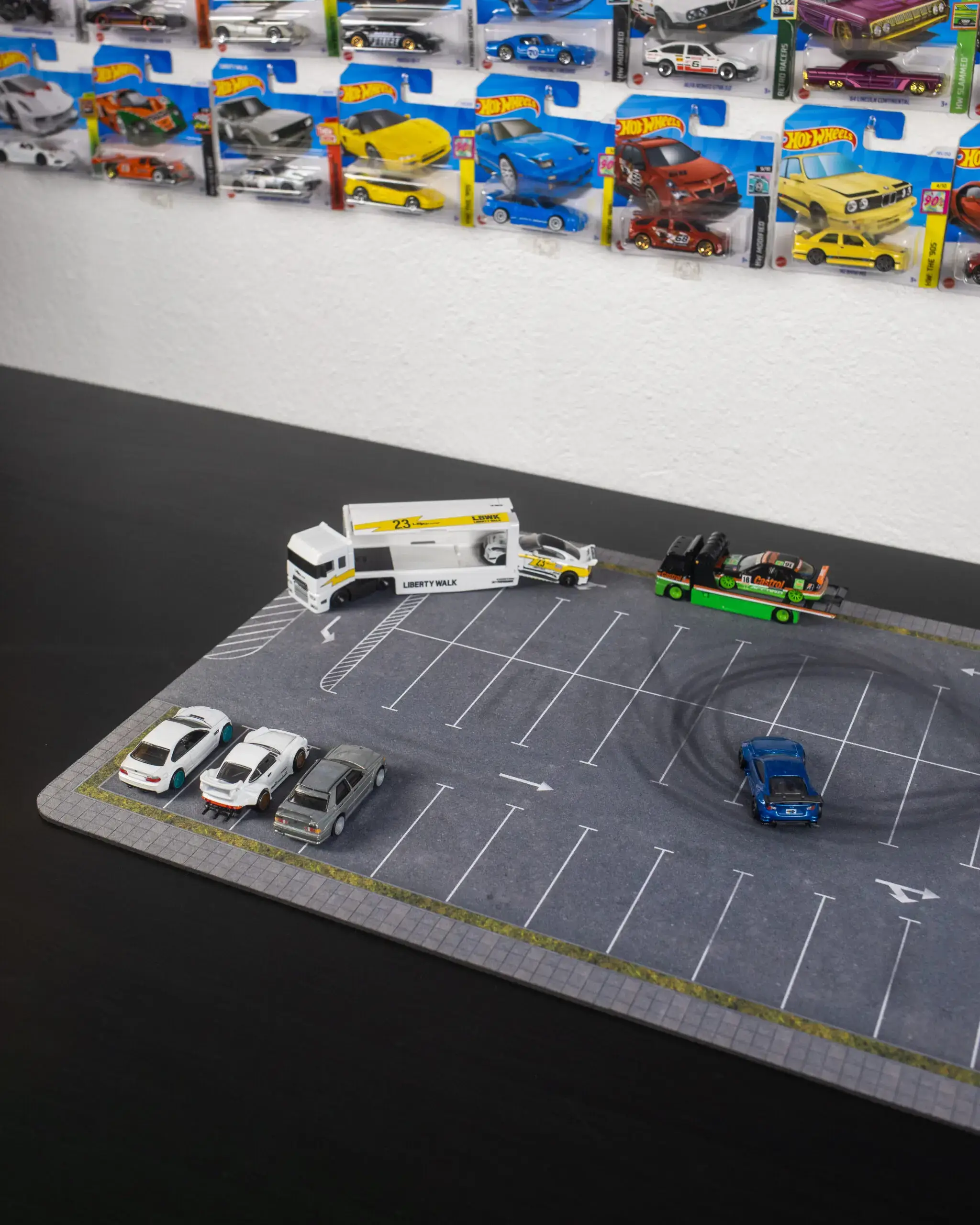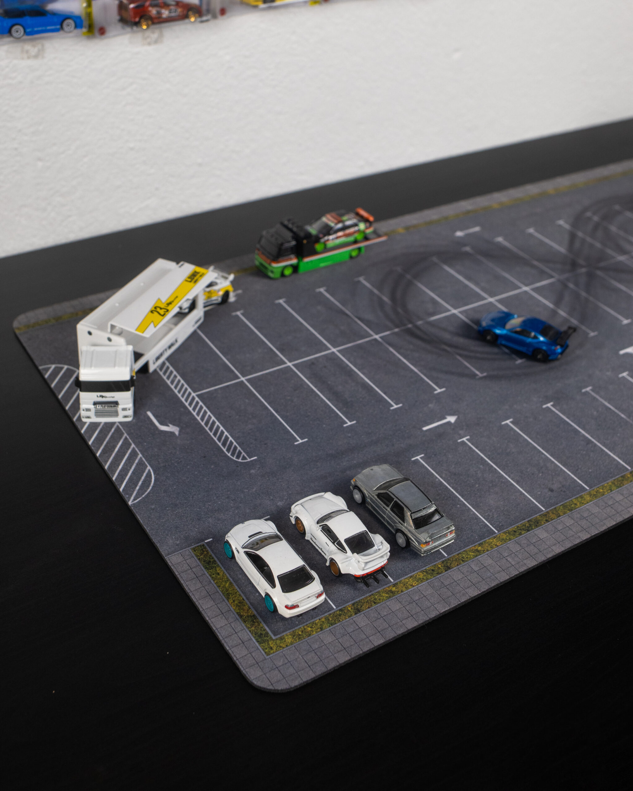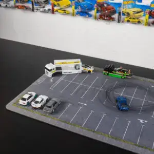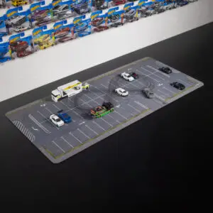 Przenieś swoje kolekcjonerskie modele do realistycznej, miejskiej scenerii dzięki macie dioramie o wymiarach 60×40 cm. Podkładka została zaprojektowana specjalnie w skali 1:64.