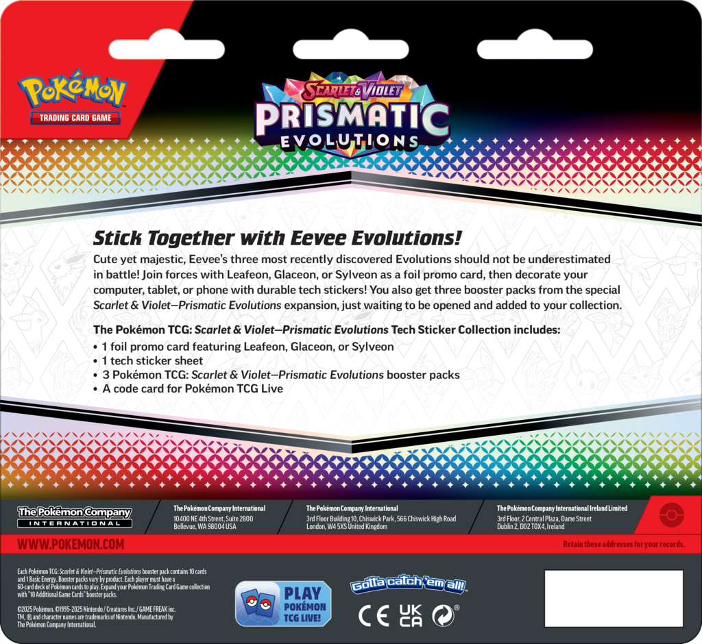 Połącz siły z Leafeonem, Glaceonem lub Sylveonem jako specjalną kartą promocyjną w wersji foil, a następnie ozdób swój komputer, tablet lub telefon wytrzymałymi naklejkami na urządzenia!