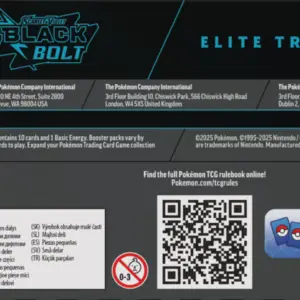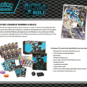 Poznaj region harmonii i prawdy z Pokémon TCG: Scarlet & Violet – White Flare – Elite Trainer Box. Połącz siły z Pokémonami z Unovy i wznieś się na szczyt jako Trener! Rozwijaj Snivy’ego, Tepiga i Oshawotta aż do Serperiora ex, Emboara i Samurotta, odkryj niezaprzeczalną moc z legendarnymi i mitycznymi Pokémonami regionu, w tym Reshiram ex, Keldeo ex, Zekromem ex i Meloettą ex. Wypełniając swój Pokédex, zwróć uwagę na specjalne ilustracje każdego Pokémona i karty ze wzorami Poké Balli w rozszerzeniach Pokémon TCG: Scarlet & Violet – White Flare i Pokémon TCG: Scarlet & Violet – Black Bolt!