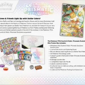 Prismatic Evolutions to idealne rozszerzenie zarówno dla weteranów serii, jak i tych, którzy dopiero rozpoczynają swoją przygodę w świecie Pokémon. Rozszerzenie dostarcza mnóstwo nowych, potężnych kart, które z pewnością wzbogacą każdą kolekcję oraz rozgrywkę.