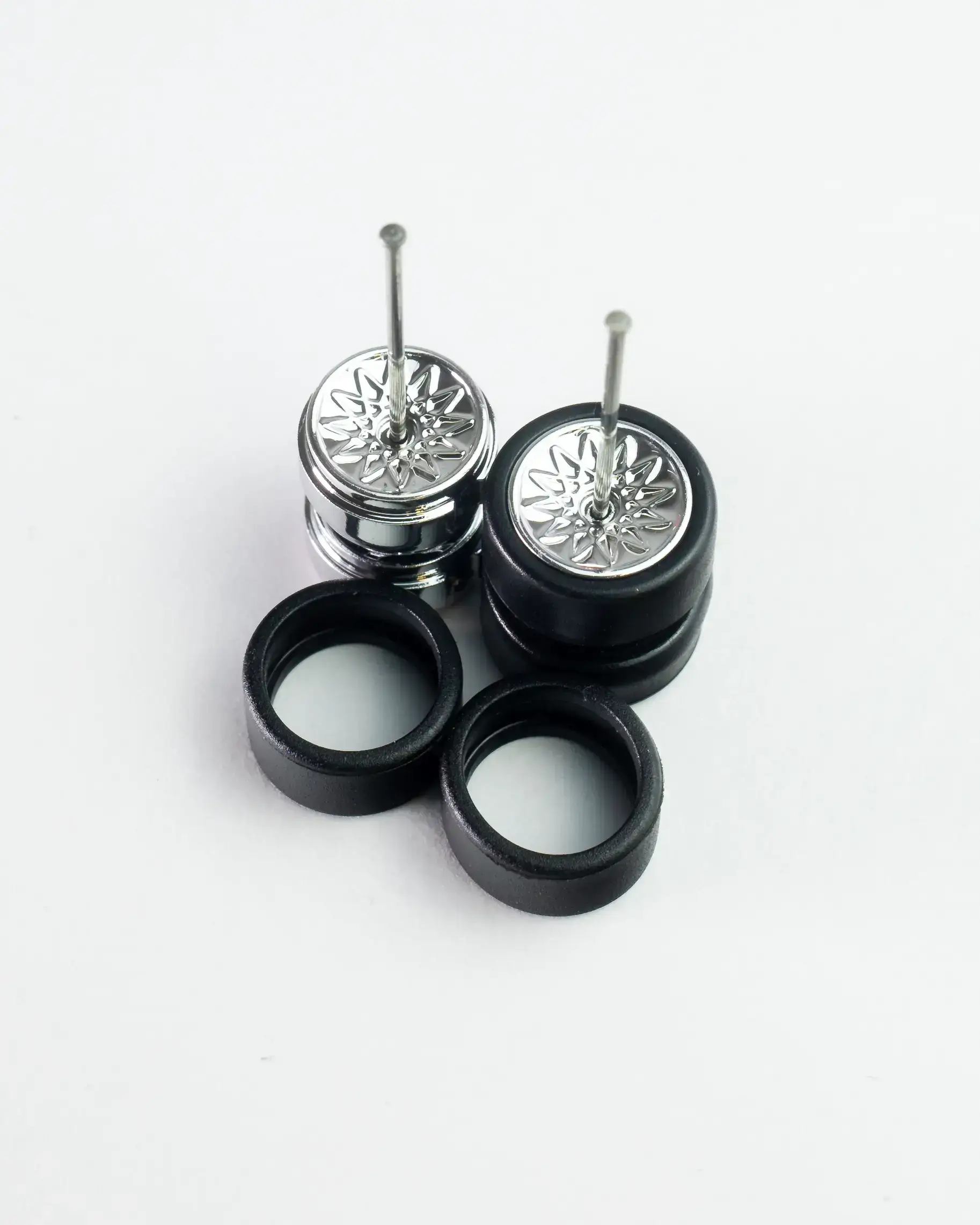 Dzięki tym kółkom o 5-ramiennym designie Twój model samochodu zyska nowy, stylowy wygląd. To nie tylko praktyczny zestaw, ale także szansa na unikalne urozmaicenie kolekcji modelarskiej.